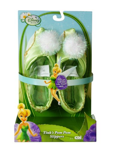 You can look just like Tink with these satiny green Tinker Bell slippers Sparkly pom-poms adorn the toes making you feel light on your feet Iconic tinker bell styling Tinker bell signature embroidered on slipper For play use only Iconic tinker bell styling Tinker bell signature embroidered on s Read More..
