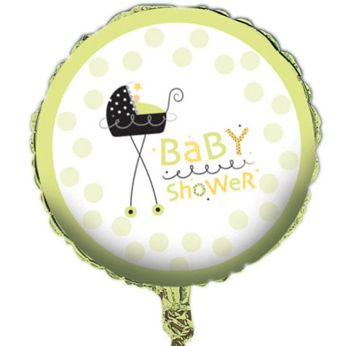 Includes 1 18 foil balloon that features a black stroller with light green polka dots in the center and a light green border The balloon reads Baby Shower and is 2-sided Warning do not release outdoors or near electric power lines and adult supervision is recommended Size 18 Material Foi Read More..