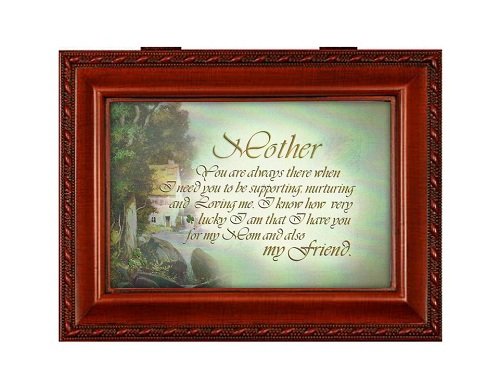Cottage Garden Irish theme music box for Moms has an elegant wood grain finish It features beautiful and inspirational green artwork which reads Mother You are always there when I need you to be supporting nurturing and loving me I know how very lucky I am that I have you for my mom and also my Read More..